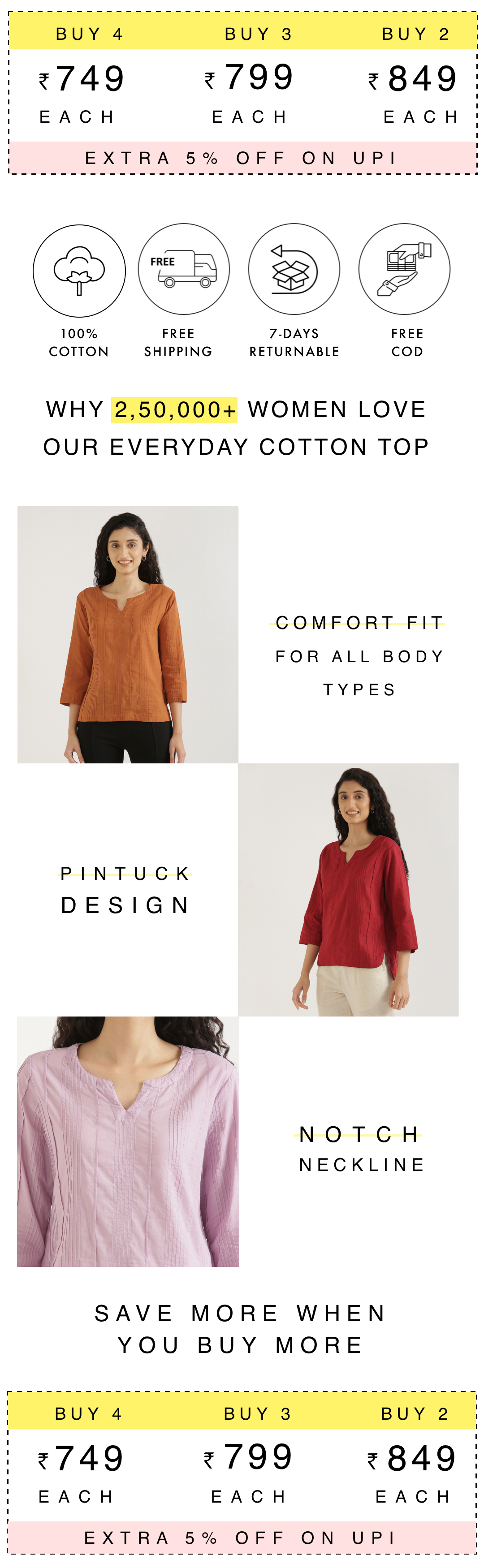 Experience the soft embrace of our cotton top that feels like a gentle hug all day long. No more itchiness or stiffness, just pure comfort that lets you move freely and confidently, making every moment enjoyable.