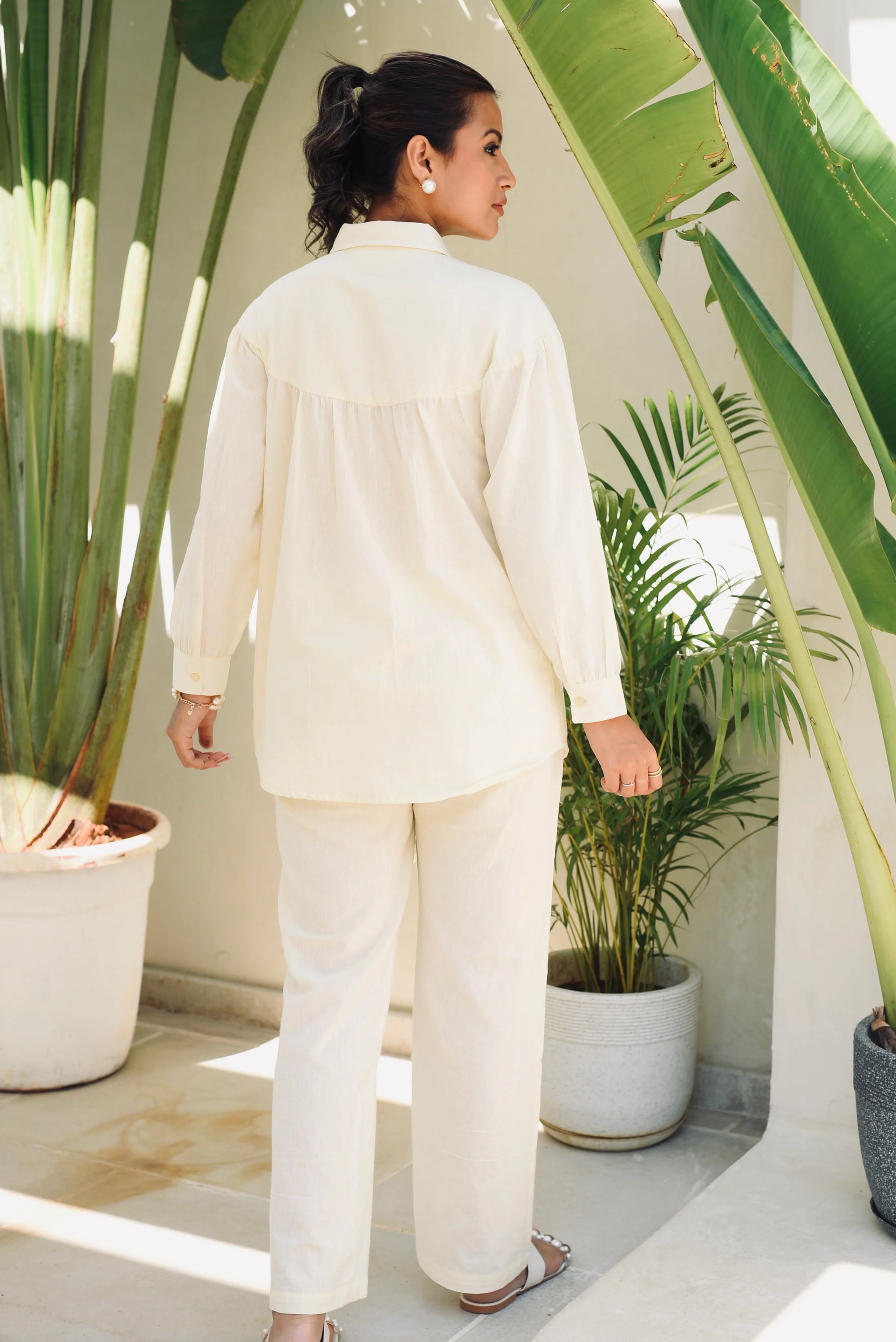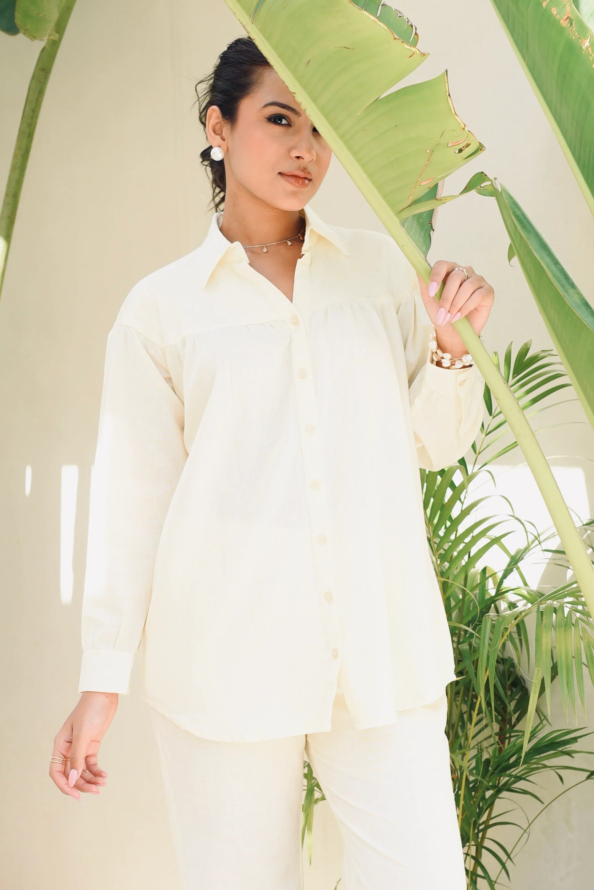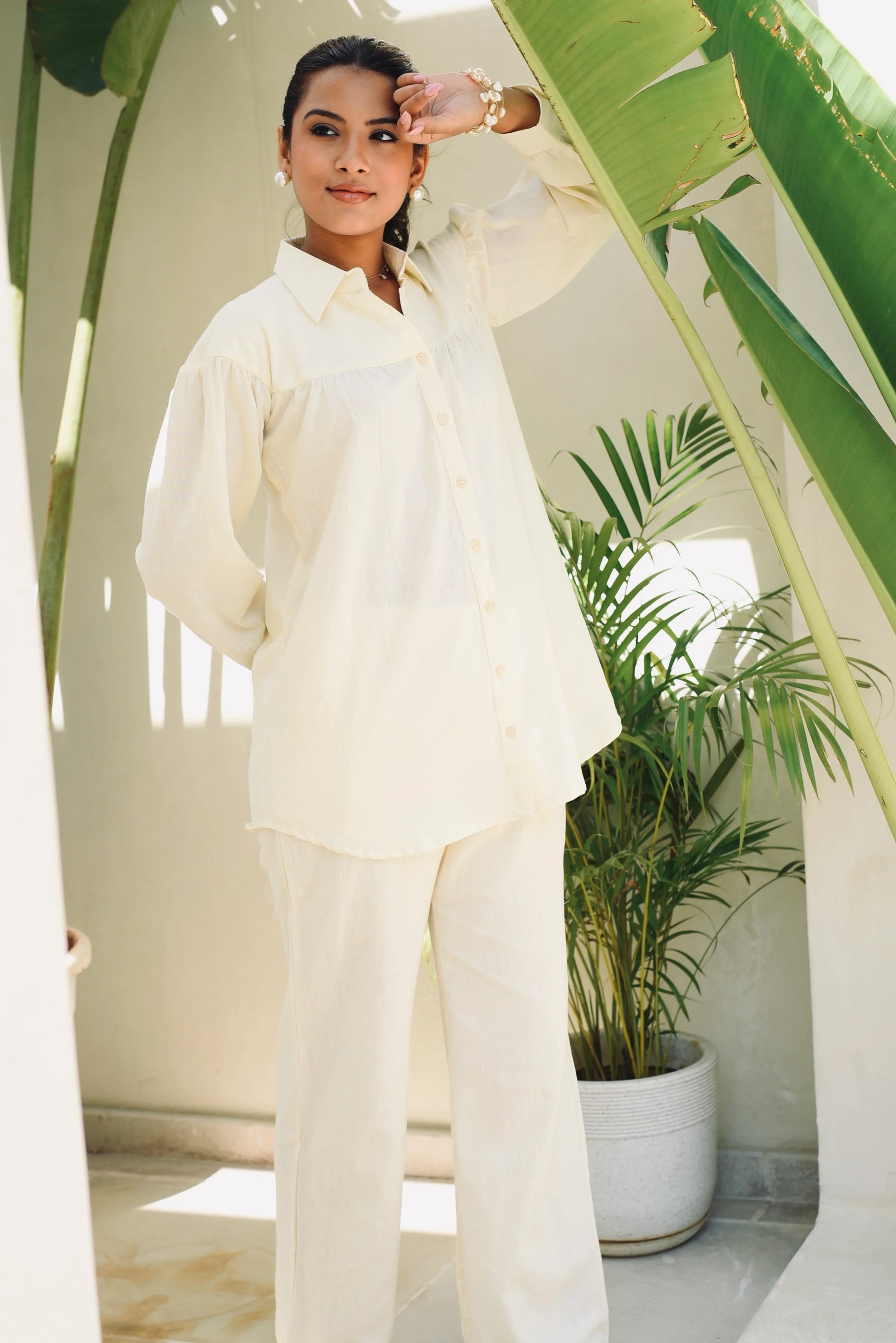 This coord-set includes a shirt and pants. High-quality premium linen co-ord set.