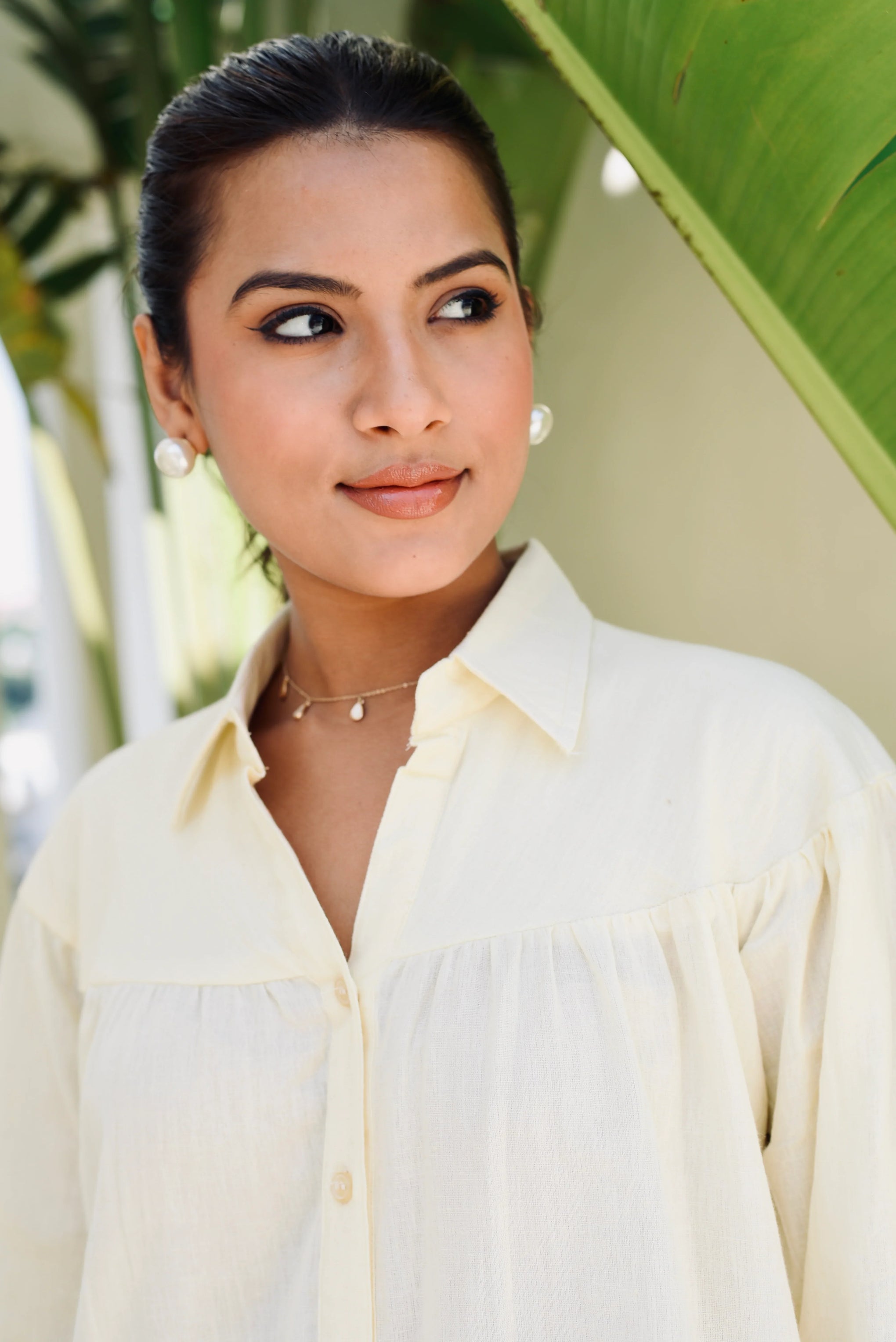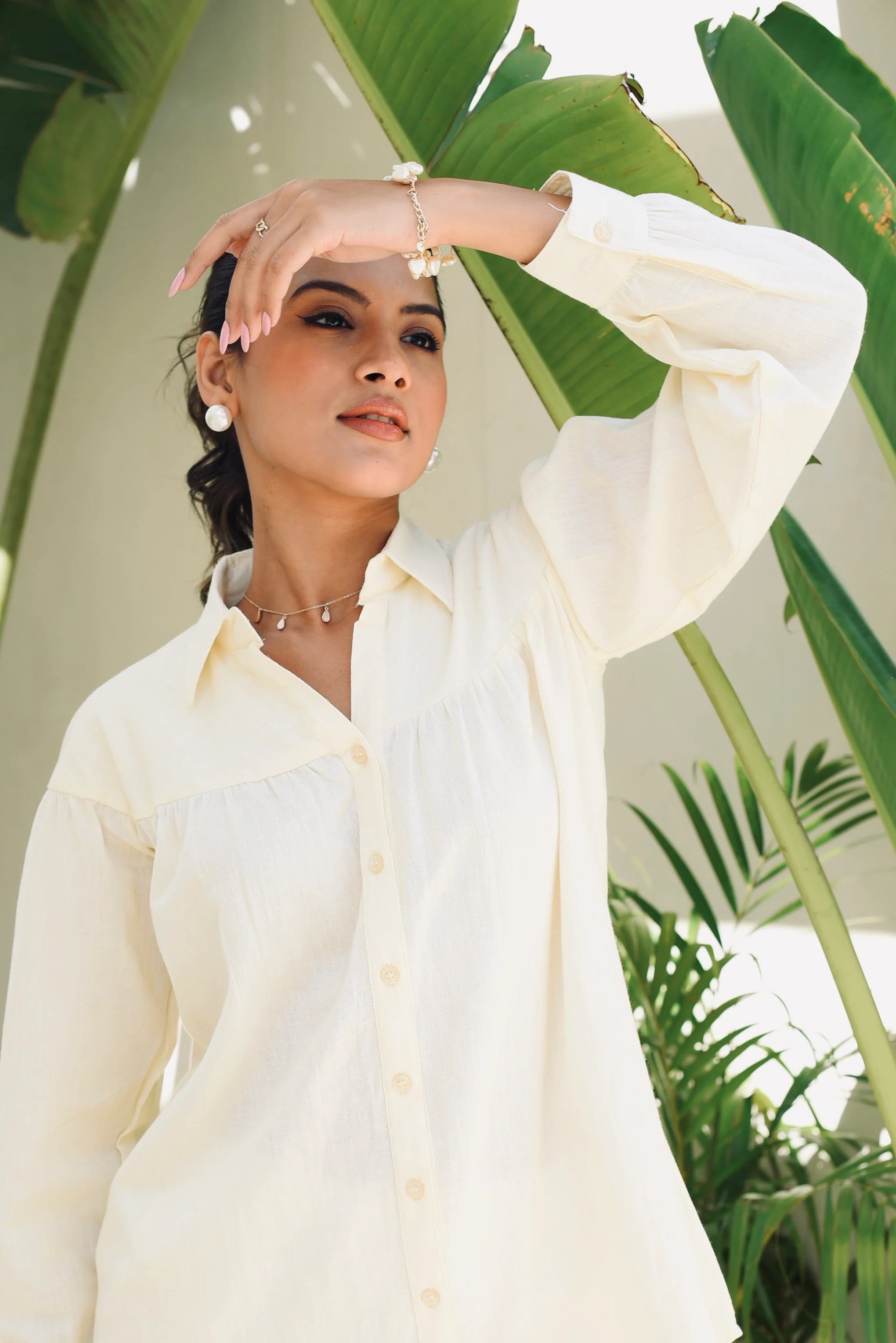 TOP: OVERSIZED SHIRT WITH METICULOUS PLEATED GATHERS