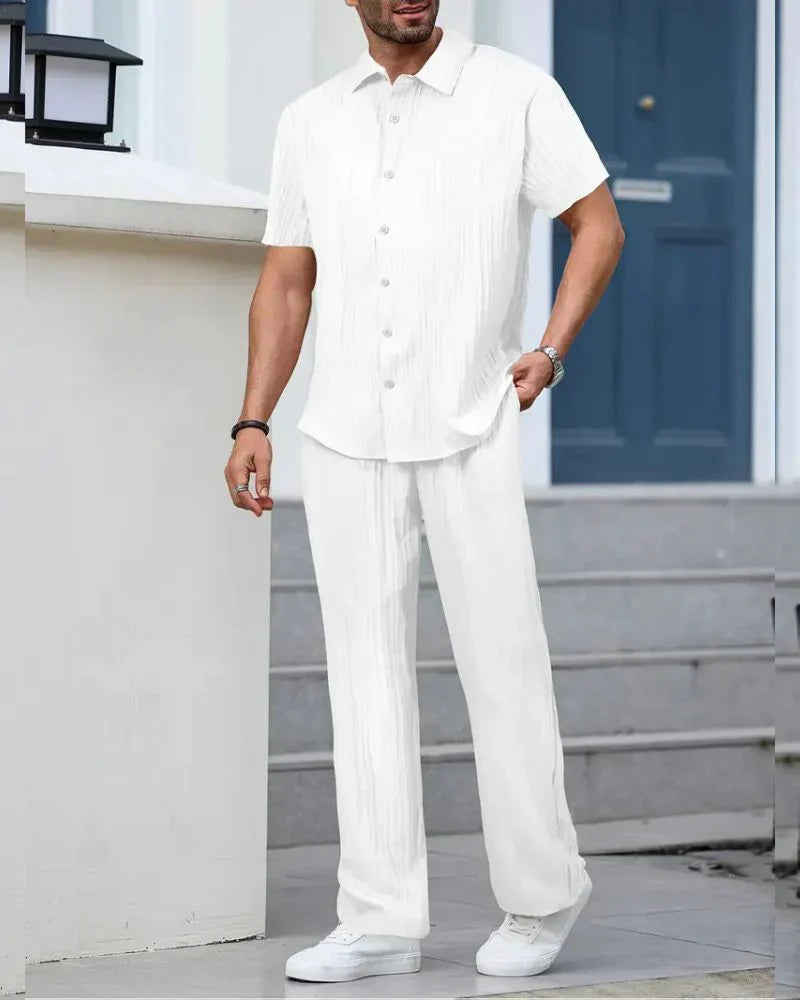 Stylish Button-Up Shirt: Features a classic collar and short sleeves, delivering a crisp yet relaxed fit.