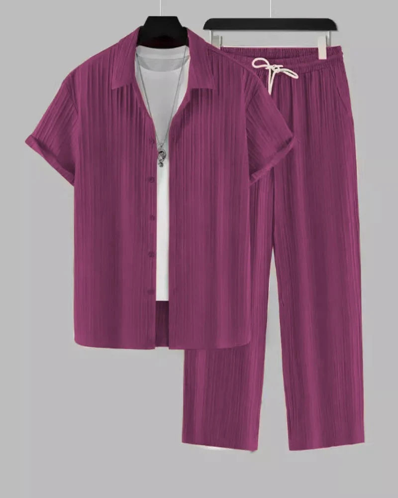 The deep mulberry shade gives this set a rich, luxurious appeal, making it a standout choice for both casual and refined occasions. The elegant pleated texture enhances its aesthetic, offering a contemporary, fashion-forward look that suits a variety of styles and settings.