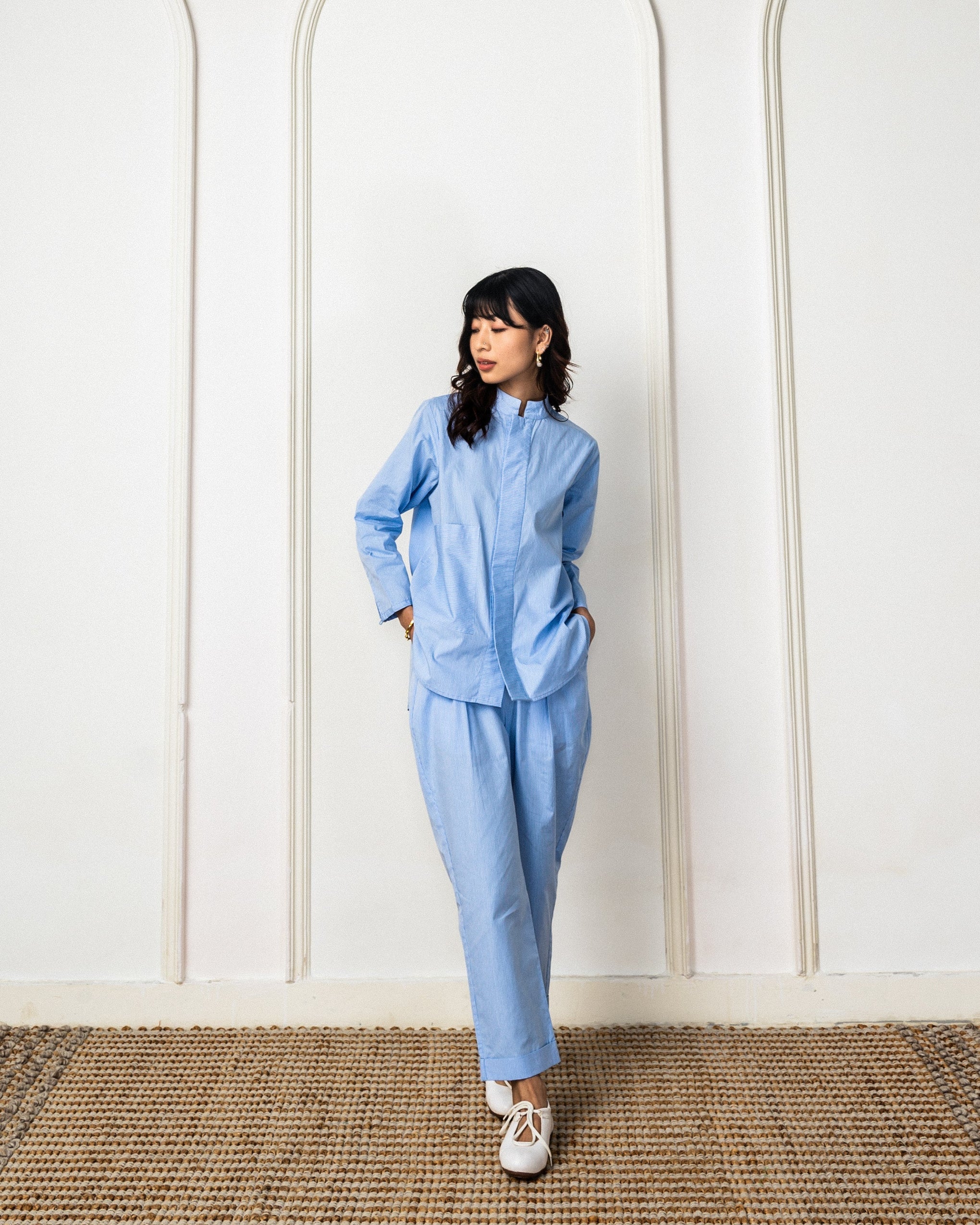 "Wearing the Ninki Coord Set makes me feel like I'm wrapped in a gentle breeze. The cotton is so breathable and the pinstripe design is timeless. Every time I wear it, I'm reminded of carefree childhood days. It’s perfect for any occasion – a casual day out or even a relaxed evening with friends. It’s like a hug in clothing form! 😊"